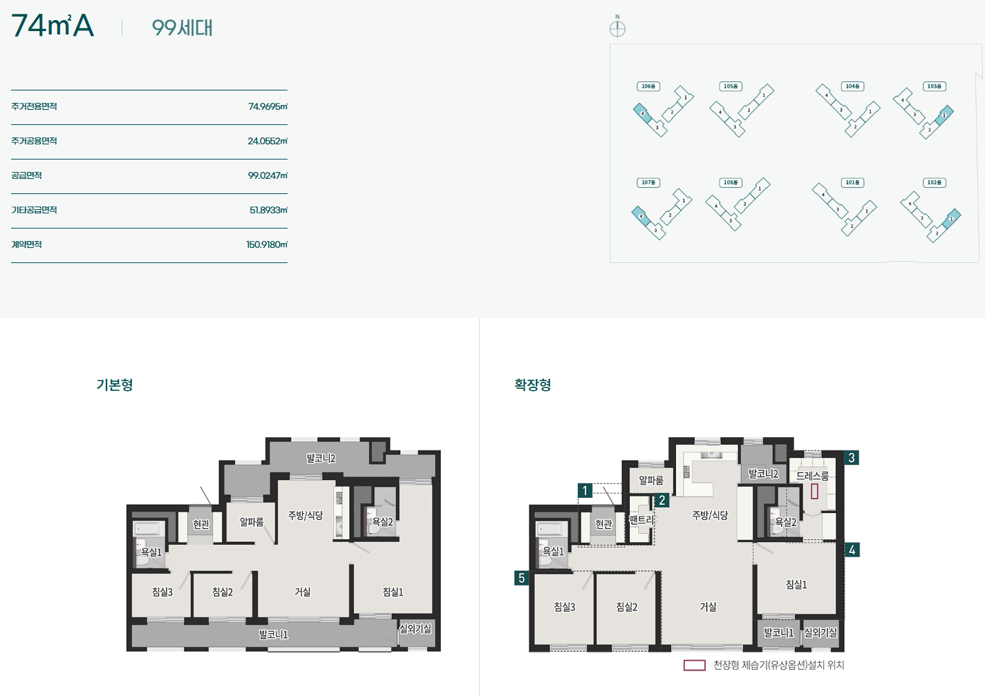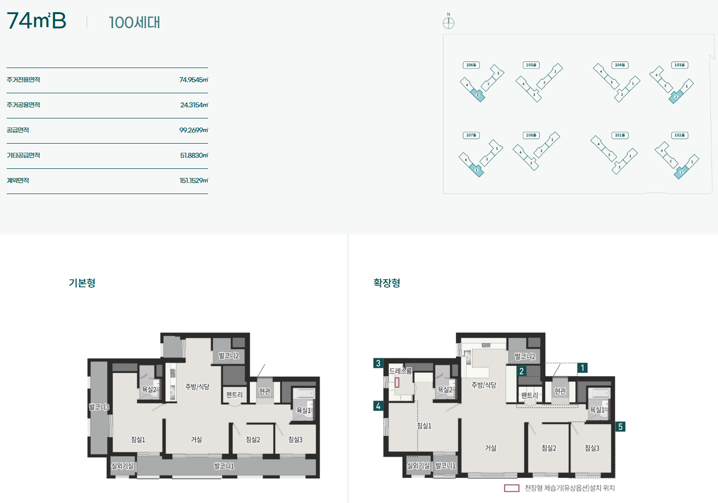 주력은 74㎡·84㎡ 중소형이며 최상층 펜트하우스로 희소가치를 더했습니다. 실수요가 가장 두터운 면적대에 물량을 집중해 환금성과 임대 수요 대응력을 동시에 노렸다는 해석이 가능합니다. 특히 평택 푸르지오 센터파인은 같은 면적이라도 수납·가사동선·프라이버시를 세분화한 세대 설계로 선택 폭을 넓혔습니다.