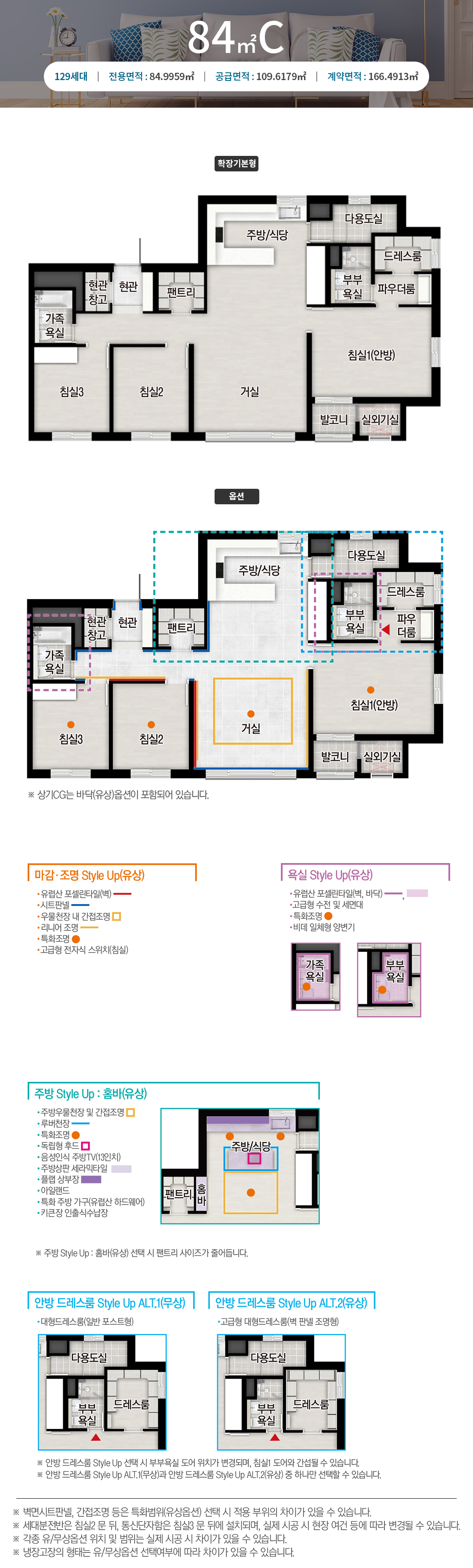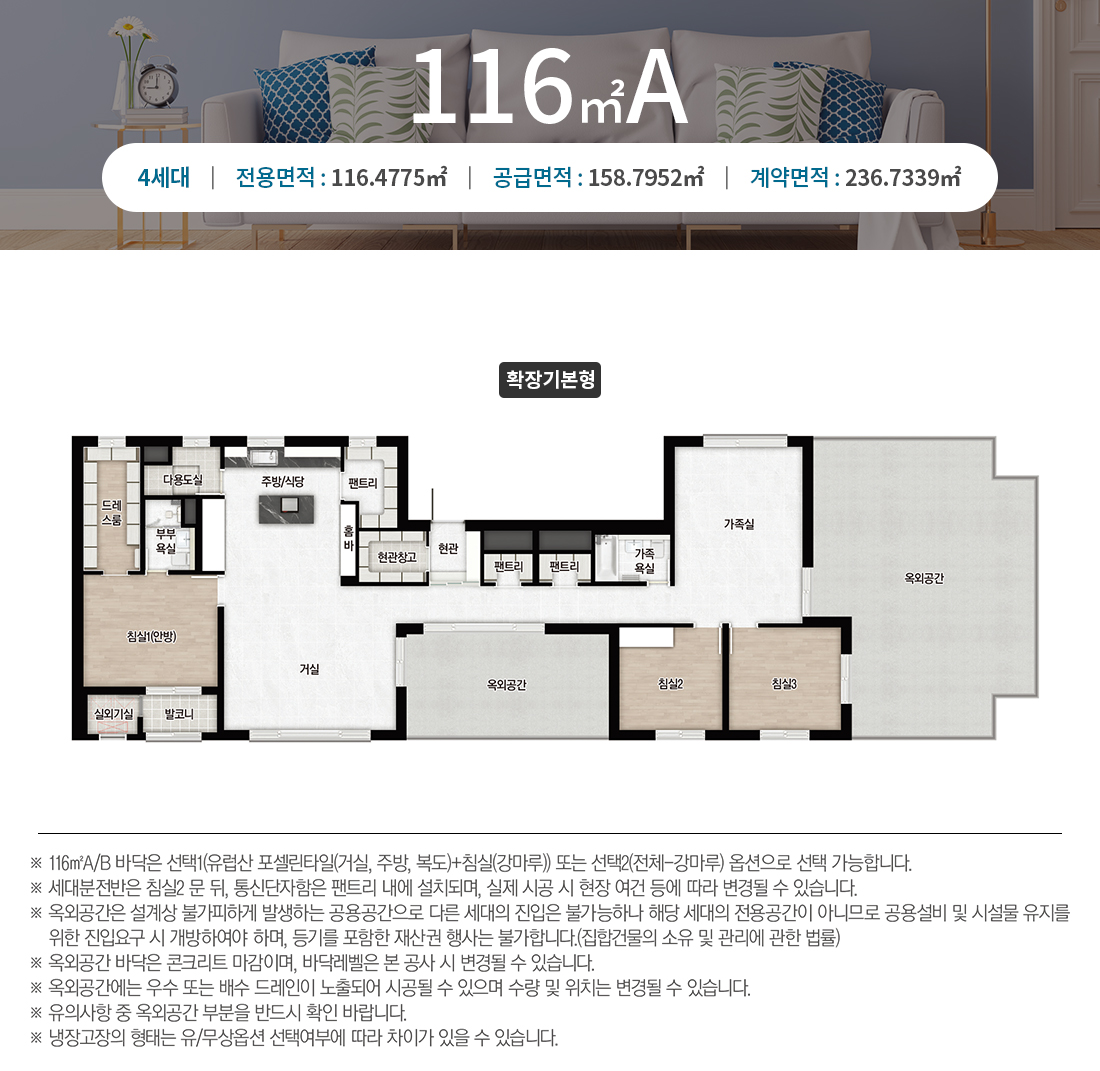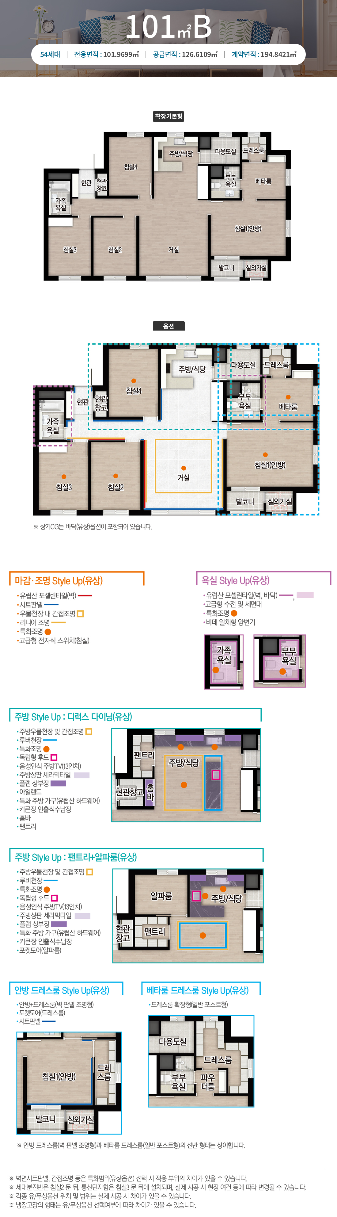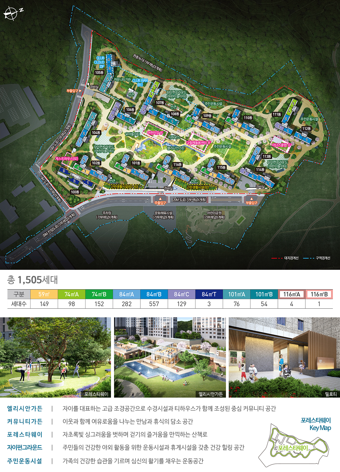 전용 59~116㎡, 11개 타입으로 구성되며 ‘판상형 중심 + 3면 개방형 약 41%’로 환기성과 채광을 끌어올렸습니다. 드레스룸·알파룸·팬트리·현관창고 등 수납 특화, 일부 타입의 룸인룸(분리형 서재·놀이방 활용)이 실면적 체감을 넓혀줍니다. 가족 구성 변화에 유연한 가변성까지 고려한 음성 자이 센트럴시티 입니다.