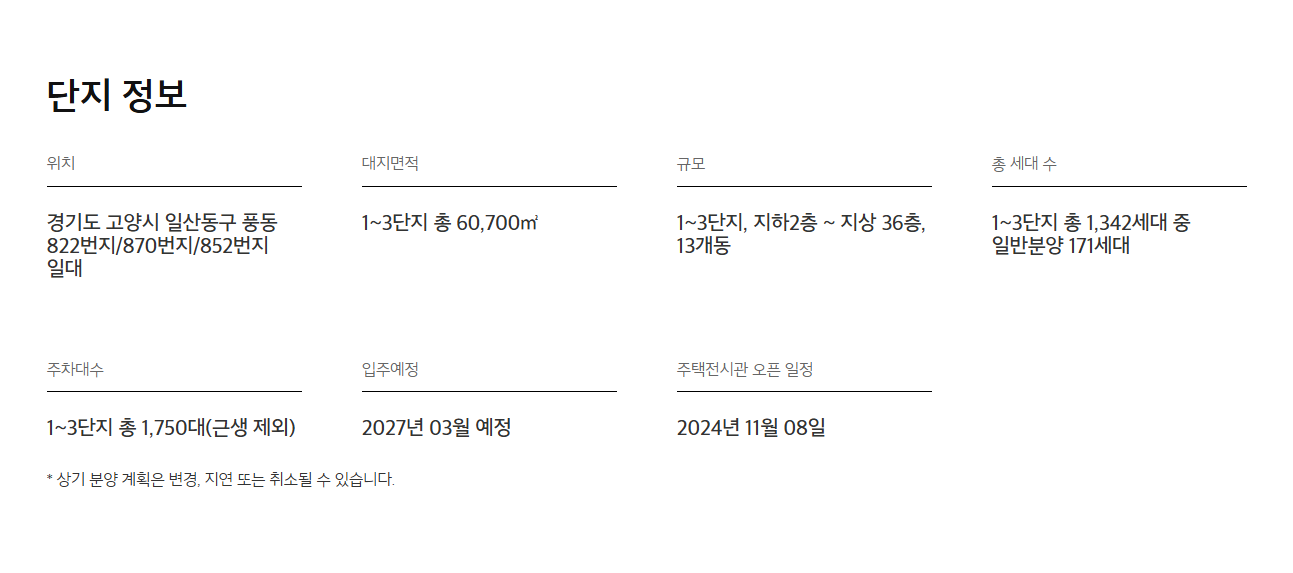 일산 이편한세상 메이포레 는 일산동구 풍동 852번지 일원 약 18,361평 대지, 연면적 약 64,312평 규모로 조성됩니다. 용적률 239%, 건폐율 약 16%의 낮은 밀도 설계가 핵심인데요. 지하 2층~지상 36층, 13개 동 1,342세대(일반 171세대) 구성에 가구당 약 1.3대 수준의 지하주차를 확보했습니다. 남향 위주와 넉넉한 동간 이격으로 채광·프라이버시를 균형 있게 잡은 점이 돋보입니다.