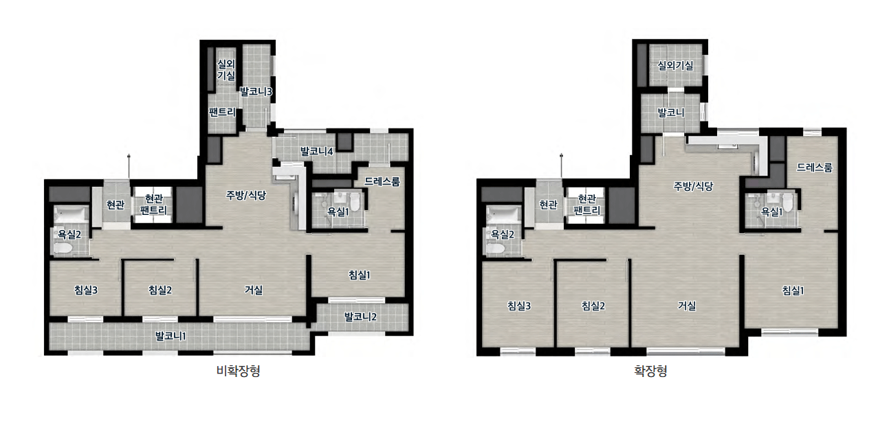 전용 59㎡·84㎡의 중소형으로만 구성했고 두 타입 모두 4베이 판상형입니다. 특히 84A는 맞통풍이 가능한 동선, 드레스룸·현관 팬트리·연결형 다이닝으로 가사 효율이 높습니다. 태양광 발전, 실별 온도 제어, 전열교환 환기, 홈 IoT로 마감한 스마트 설계는 실거주 만족도를 끌어올립니다. 소형이라도 수납과 환기, 동선에서 불편을 줄이는 설계가 일산 이편한세상 메이포레 의 경쟁력입니다.