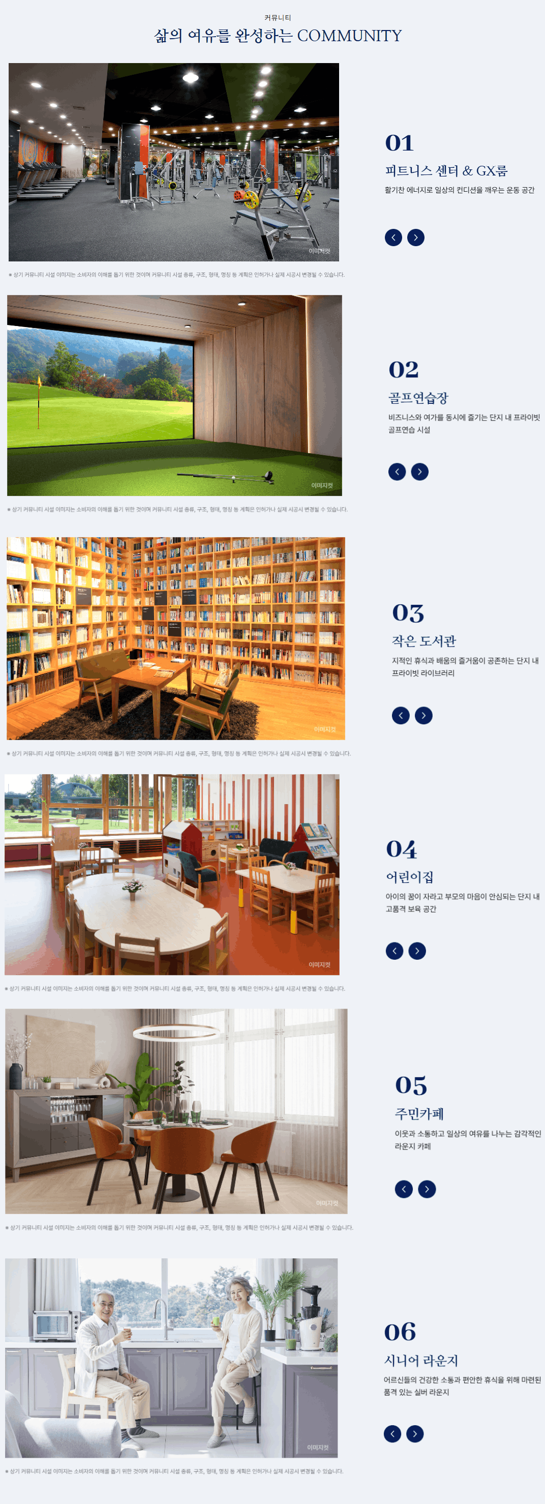 라포르 미아 더퍼스트의 핵심은 규모보다 구조입니다. 중소형 타입 중심으로 세대를 채운다는 것은 임대 거주자의 라이프스타일을 실사용 관점에서 설계했다는 뜻이기도 합니다. 동 간 거리를 넉넉하게 이격해 바람길을 만들고, 어린이 차량 진입 동선을 분리하며, 보행자와 주차장 출입구도 구분해 단지 내부의 안전과 쾌적성을 함께 챙긴 흐름이 보입니다. 민간임대 단지에서 흔히 아쉬운 부분이 커뮤니티의 밀도인데, 라포르 미아 더퍼스트는 골프 연습과 스크린 공간, 헬스장, 주민 카페 등 생활 체류 시간을 늘리는 시설을 전면에 두어 차별화를 시도했습니다.