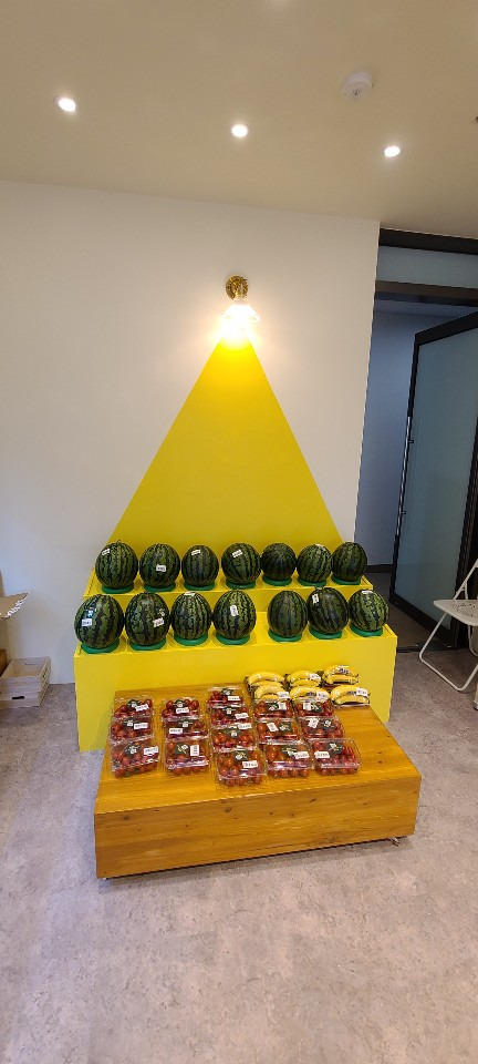 서울 목동 과일가게 인테리어 8평 시공현장 홍보영상 홈코디 분석 내용 무인상점으로 키오스크 설치 벽체는 도장 과일진열대는 각파이프로 뼈대을 제작후 삼나무 집성목으로 바구니 제작 진열대는 LED조명 바닥은 데코타일시공 외부는 갈바시공 창문은 유압쇼바을 달아서 두번 접히게 제작 가마찌도어 제작 빠른시공과 저렴한 가격 리뷰 0 포토 리뷰만 보기 목록