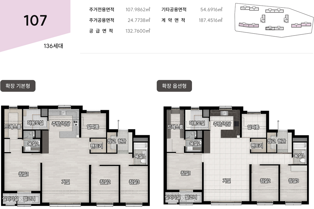 실사용을 키우는 평면, 84·107㎡의 투트랙