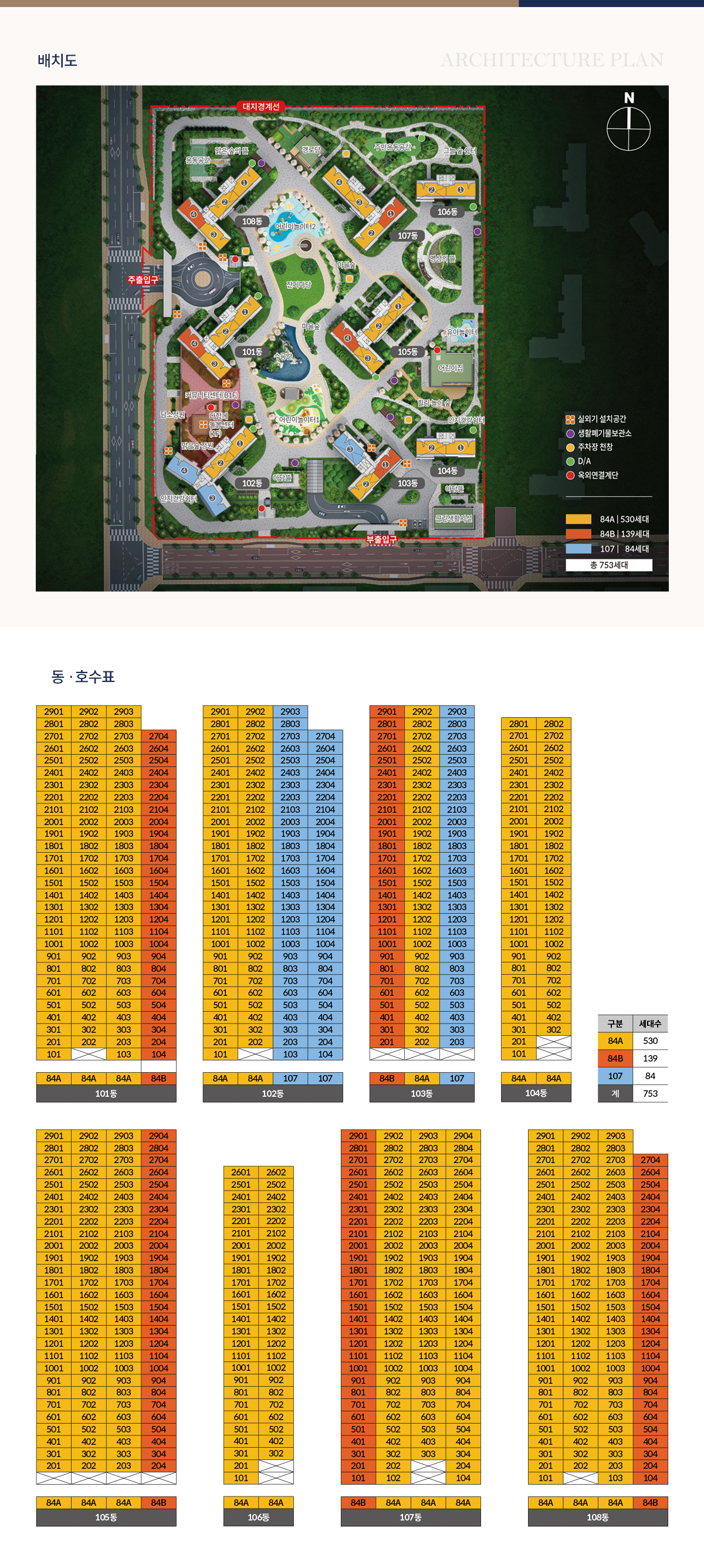 총 753세대로 스케일은 안정적이며 관리 효율이 좋은 편입니다. 세대수 대비 주차 공간을 여유롭게 설계해 출퇴근 피크타임에도 동선이 매끄럽고, 일부는 근린생활시설과 분리 배치해 혼잡도를 낮췄습니다. 이런 기본기는 평택 화양 동문 디 이스트의 체감 편의성을 높이는 요소였습니다.