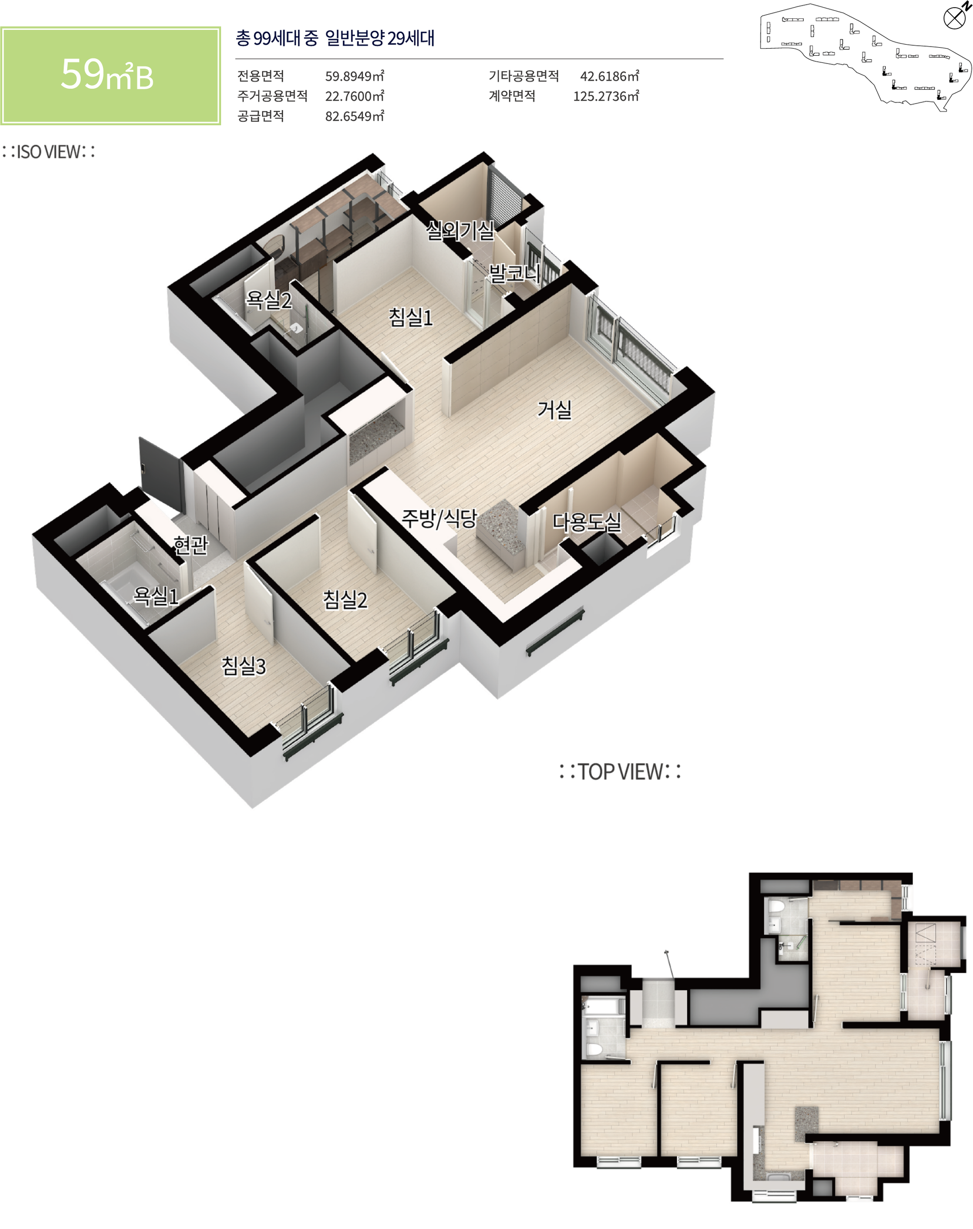 전용 59~85㎡로 실수요 선호가 높은 중소형 위주 라인업입니다. 판상형 4베이 중심의 맞통풍 설계가 기본이라 채광과 환기 효율이 좋고, 타입별로 알파룸과 팬트리를 특화해 수납 스트레스를 줄였습니다. A타입은 ㄷ자 주방과 대형 팬트리가 강점이고, B타입은 타워형에 ㄴ자 주방 구성이어도 수납을 넉넉히 확보해 취향에 따라 고르기 좋습니다. 실제로 두산위브 센트럴파크 강화는 “작아도 넓게 쓰는” 체감면적 설계가 돋보입니다.